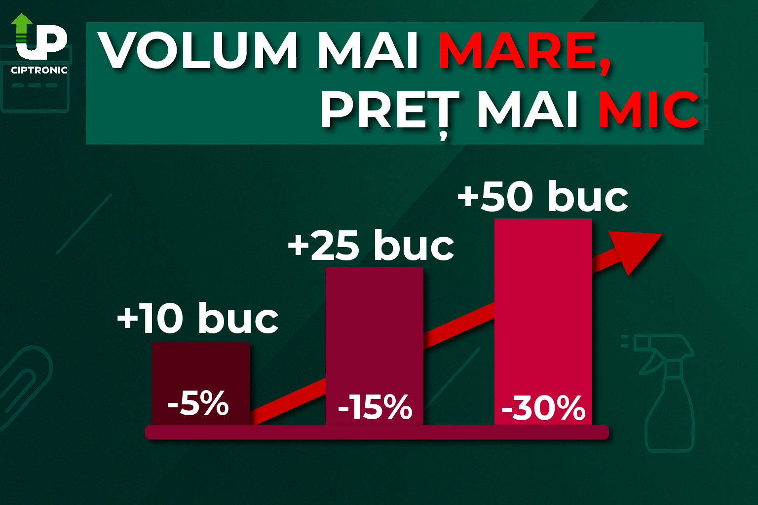 Suntem înregistrați în SEAP/SICAP și oferim condiții speciale pentru achiziții publice și comenzi en-gros. Livrăm rapid din stoc și oferim discounturi progresive pentru clienții corporate.