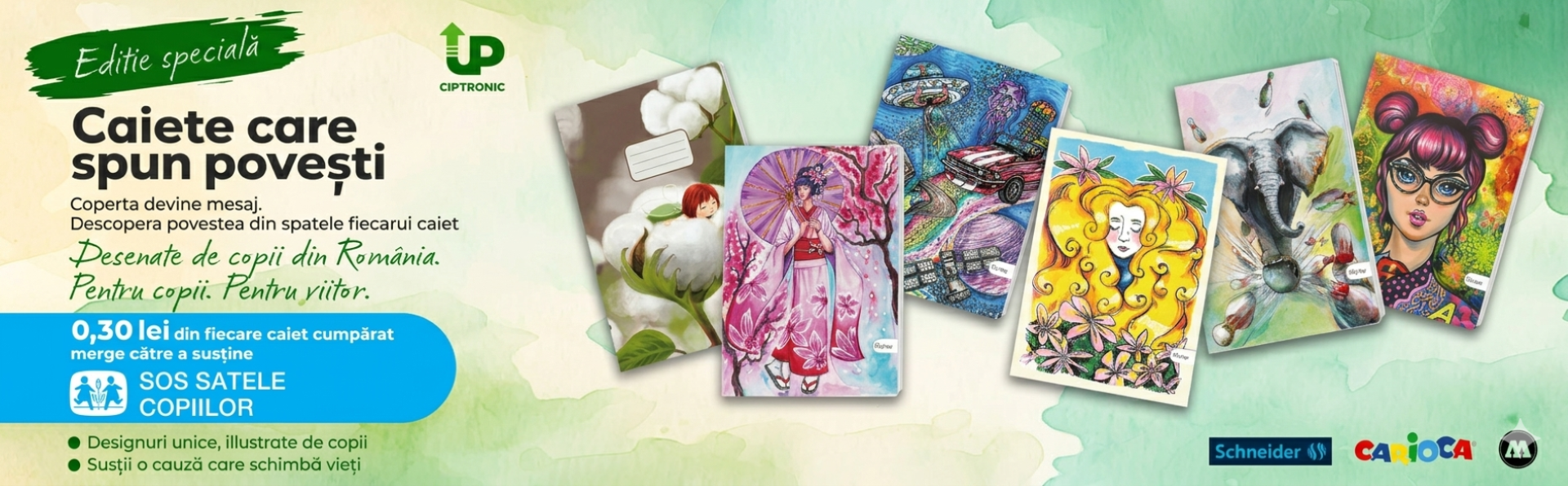 Prin parteneriatul cu SOS Satele Copiilor, fiecare caiet are un impact concret.